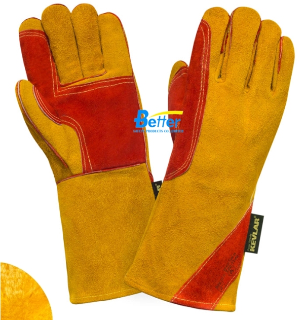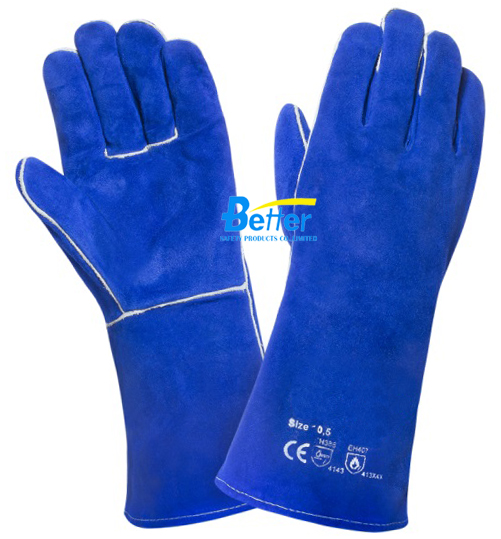 High Quality Blue Cow Split Leather Welder Gloves(BGCW204)