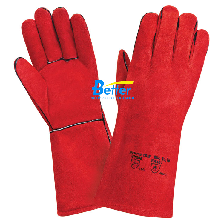 Deluxe 14 inch Red Cow Split Leather Welding Gloves